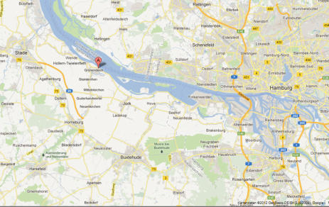 Von der A 7 Abfahrt Waltershof über die Finkenwerder Straße